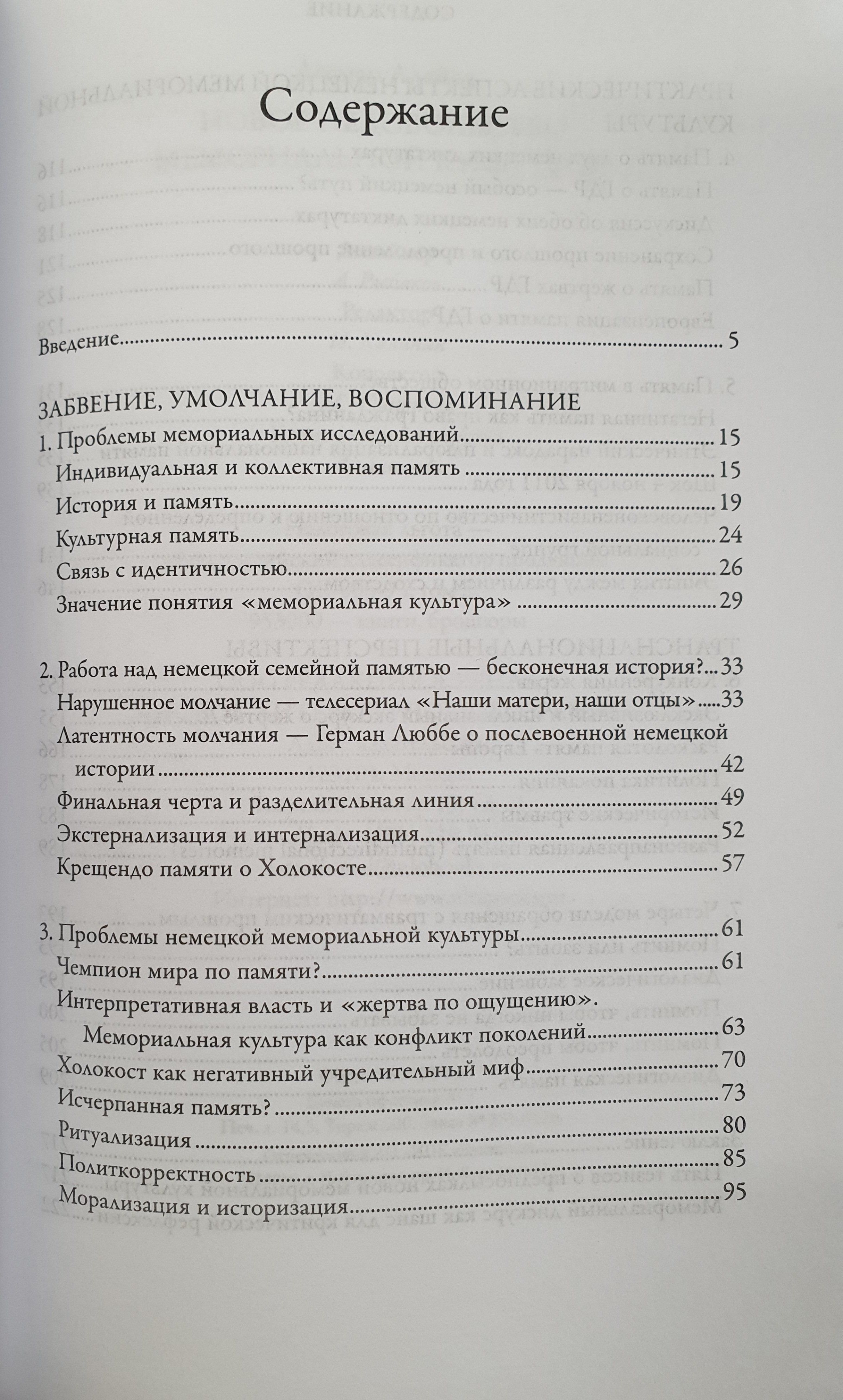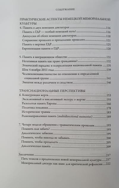 In her book, German historian and theorist of cultural memory Aleida Assmann polemizes with those who doubt the value of memorial culture, which, since the 1970s and 1980s, has become the dominant way of dealing with the past. The occasion for this growing "discontent" has been the transformation of the traumatic past into a subject of political and economic bargaining. "The Holocaust industry," the fierce competition for victim status, and the painful attachment to guilt are the most visible manifestations of how contemporary forms of cultural memory work. Partly recognizing the validity of her opponents' position, Aleida Assmann attempts to construct a memorial perspective in which accountability for the crimes committed, an ethical willingness to share guilt, and a legal framework that allows the voices of victims to be heard would make dealing with the past one important factor in consciously moving toward the future.