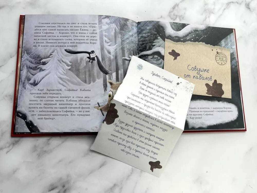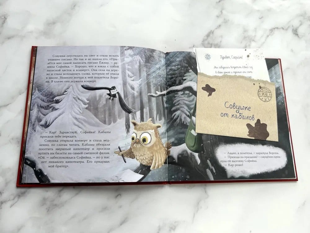 Sophia the owl and her brother Filka decided to have a dinner and invite all their friends. And to please them, Filka wrote a letter to each of them and promised them gifts that only magic will help them get.... Do you want to know what the animals answered? Then hurry up and open the book! In it you will find beautiful envelopes with real letters that you can take out and read. And you'll also find out what present the little ones got from Santa Claus.