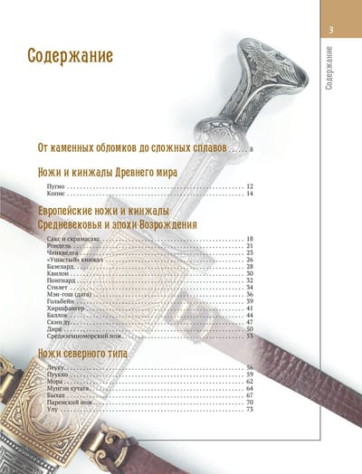 The knife is the earliest form of weaponry and has always been with man. Each nation had its own knives at different times, differing from others in shape and materials. Knives are of interest to absolutely different people of different professions - collectors, hunters, sportsmen, just connoisseurs of beautiful weapons, professionals and amateurs. In our album you will find a detailed description of different types of knives, learn about the history of their origin, the current price on the market. Each sample of cold weapons is accompanied by a colorful illustration.