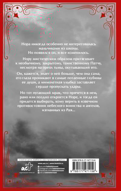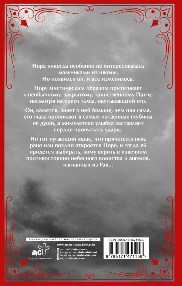 Nora is mystically drawn to the unusual, closed, mysterious Patch, despite the halo of darkness that shrouds him. He seems to know more about her than she knows herself, his eyes penetrate the most secret depths of her soul, and his fleeting smile makes her heart skip a beat. But that frightening darkness that hides in him, sooner or later will be revealed to Nora, and then she will have to choose who to believe in the eternal confrontation between the heavenly host and the angels banished from Paradise...