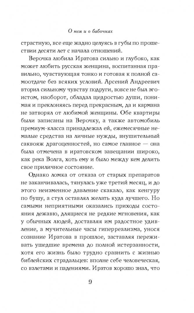 The hero of the new novel “About him and about butterflies” by the will of a rich author’s imagination gets into a very delicate and absolutely Gogol situation. It is with her that the events begin that turn the whole world around, in which rogue and wise characters, angels and ordinary people, weave the fate of the universe.