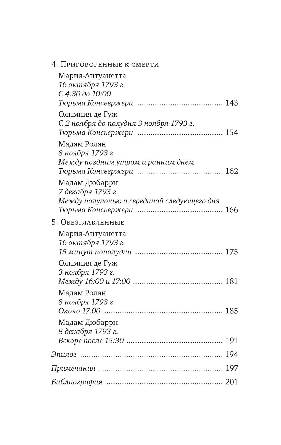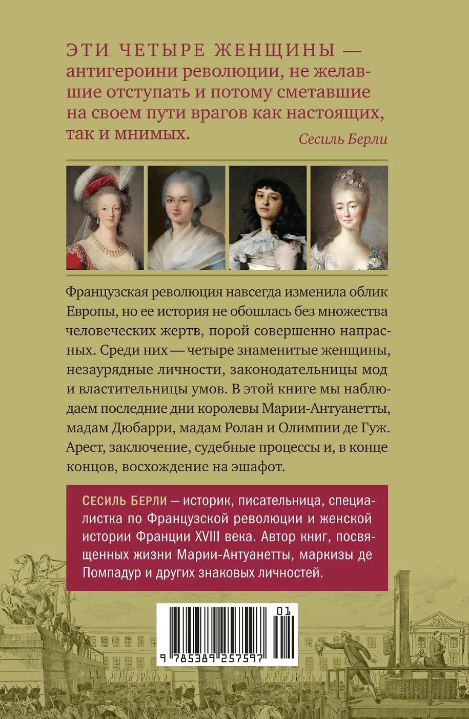 1793. The French Revolution, which determined the entire subsequent history of Europe, is in full swing. The authorities of the Republic are judging four women: the trendsetter Madame Roland, the tireless defender of women's rights Olympe de Gouges, the wasteful former favorite of Louis XV Madame Du Barry and, finally, the frivolous Queen Marie Antoinette. All of them fell victim to the revolution and its favorite weapon - the guillotine. Historian Cecile Burley recreates in detail the last days of these influential, extraordinary and very different women, from arrest to sentencing and subsequent execution...