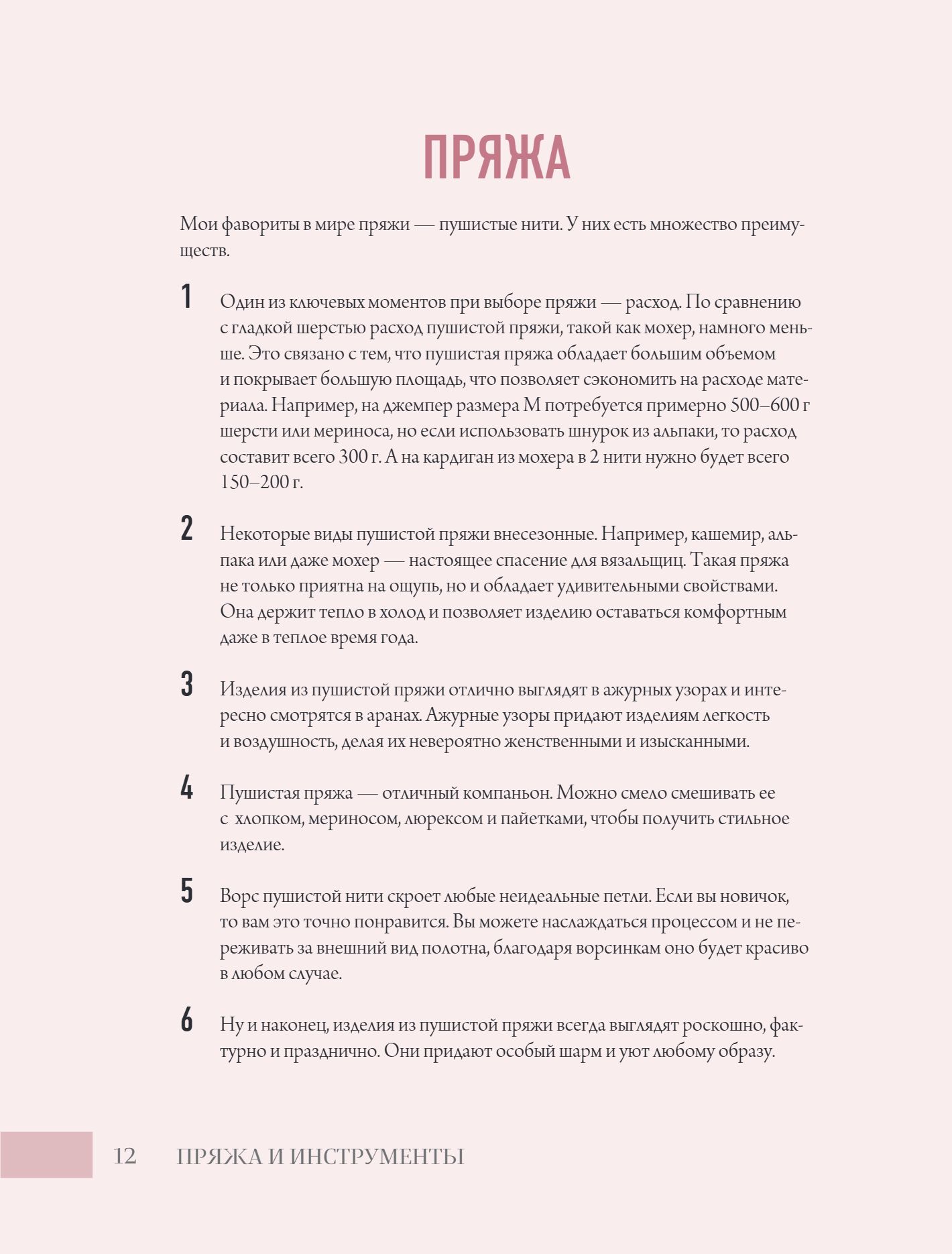 The book is from a wonderful master and popular blogger Maria Pugacheva. 10 luxury models made of fluffy yarn, which requires a special attitude when knitting, but gives products a unique and spectacular appearance. The trend for clothes made of mohair, alpaca and similar yarn was once set by Scandinavian famous brands, and for many years it has not gone out of fashion!