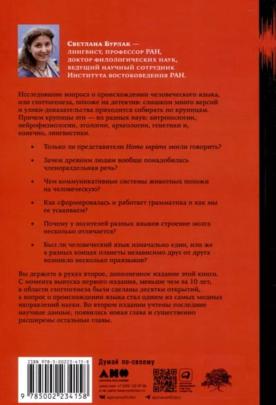In the book “The Origin of Language: Facts, Research, Hypotheses,” linguist and Doctor of Philology Svetlana Burlak collected data from all these sciences, described them in simple terms and put forward her hypothesis on the origin of language.