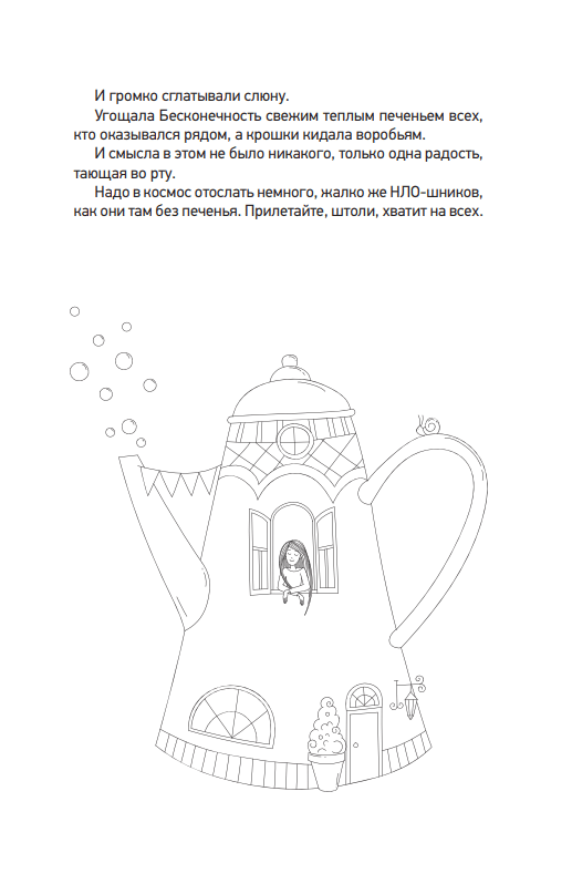 It's not easy to be adults, adults are sometimes very tired of life and of themselves. And you can't run away from that, and you can't even go backstage and say, "Tookie-tookie! I'm in the house, I'm taking a break." And sometimes you just want to hide in a shelter for ten minutes. We are all sometimes turtles who are turned on their shells by life and left floundering helplessly with our legs up. At such times, you really want to escape to a secret corner, away from problems and eternal fatigue. Here you such a refuge - this book.