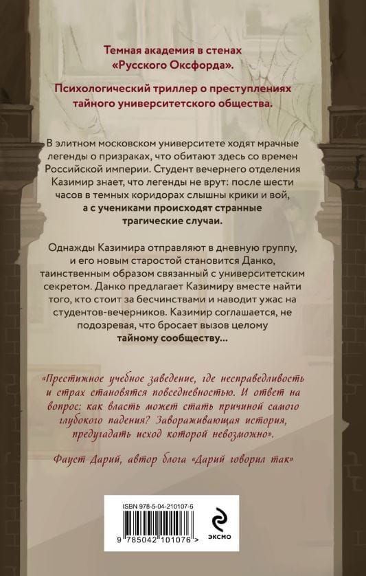 At an elite Moscow university, there are dark legends about ghosts that have lived there since the times of the Russian Empire. Evening student Kazimir knows that the legends are true: after six o'clock in the dark corridors, screams and howls are heard, and strange tragic events happen to the students.
