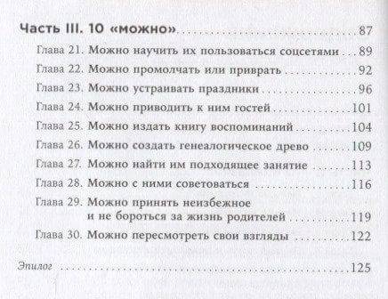 Our parents are getting older. They become resentful, intolerant, sarcastic, sloppy. We try to help, but all we get in return are more complaints. We get frustrated and angry. And then we blame ourselves for not holding back. Nina Zvereva, TV journalist, popular business coach, author of books about communication, believes that you can learn how to communicate with elderly parents so as not to irritate and annoy. You just have to accept their old age as a new reality and learn a few simple communication techniques that will help in any situation. The book is very full of stories and practices from personal experience with elderly and very elderly relatives. Advice on what you can and should do, and what you should absolutely not do.