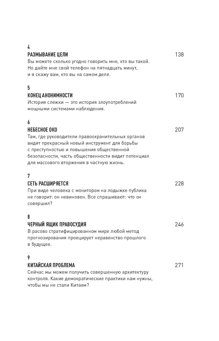 Facial recognition technologies, automatic license plate readers, flying drones, behavior prediction algorithms - all this comes into the author's focus, forcing him to think about who might benefit from the mass use of surveillance technologies and how it affects our lives.