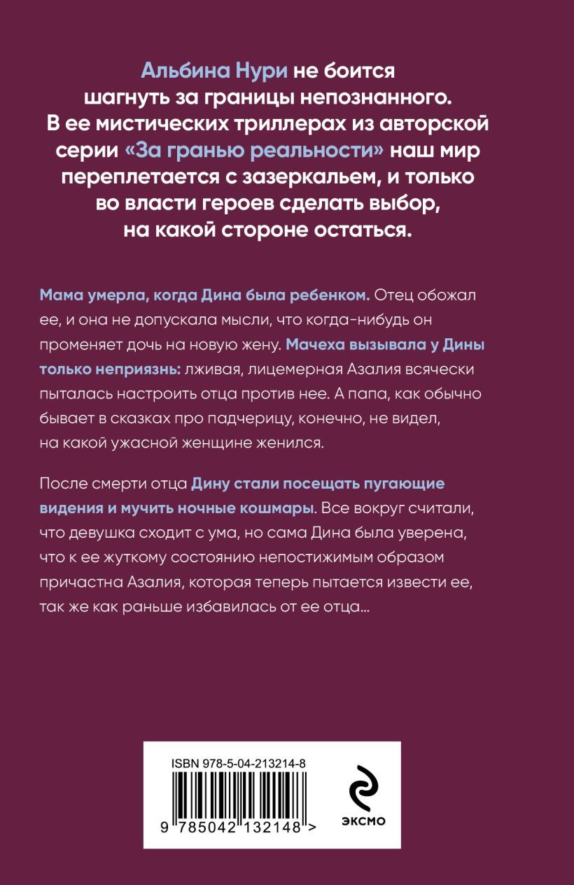 Mom died when Dina was a child. Her father adored her, and she could not bear the thought that he would ever trade his daughter for a new wife. Dina felt only hostility towards her stepmother: the deceitful, hypocritical Azalia tried in every way to turn her father against her. And her father, as is usually the case in fairy tales about a stepdaughter, of course, did not see what a terrible woman he had married. After her father's death, Dina began to have frightening visions and nightmares. Everyone around her thought that the girl was going crazy, but Dina herself was sure that Azalia was somehow involved in her terrible state, and was now trying to destroy her in the same way she had gotten rid of her father before...