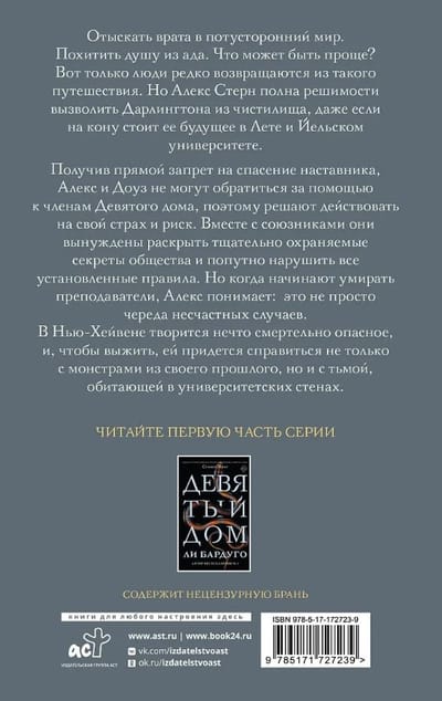 Having received a direct ban on saving the mentor, Alex and Dawes cannot turn to members of the Ninth House for help, so they decide to act at their own risk. Together with their allies, they are forced to reveal the carefully guarded secrets of the society and along the way break all the established rules.