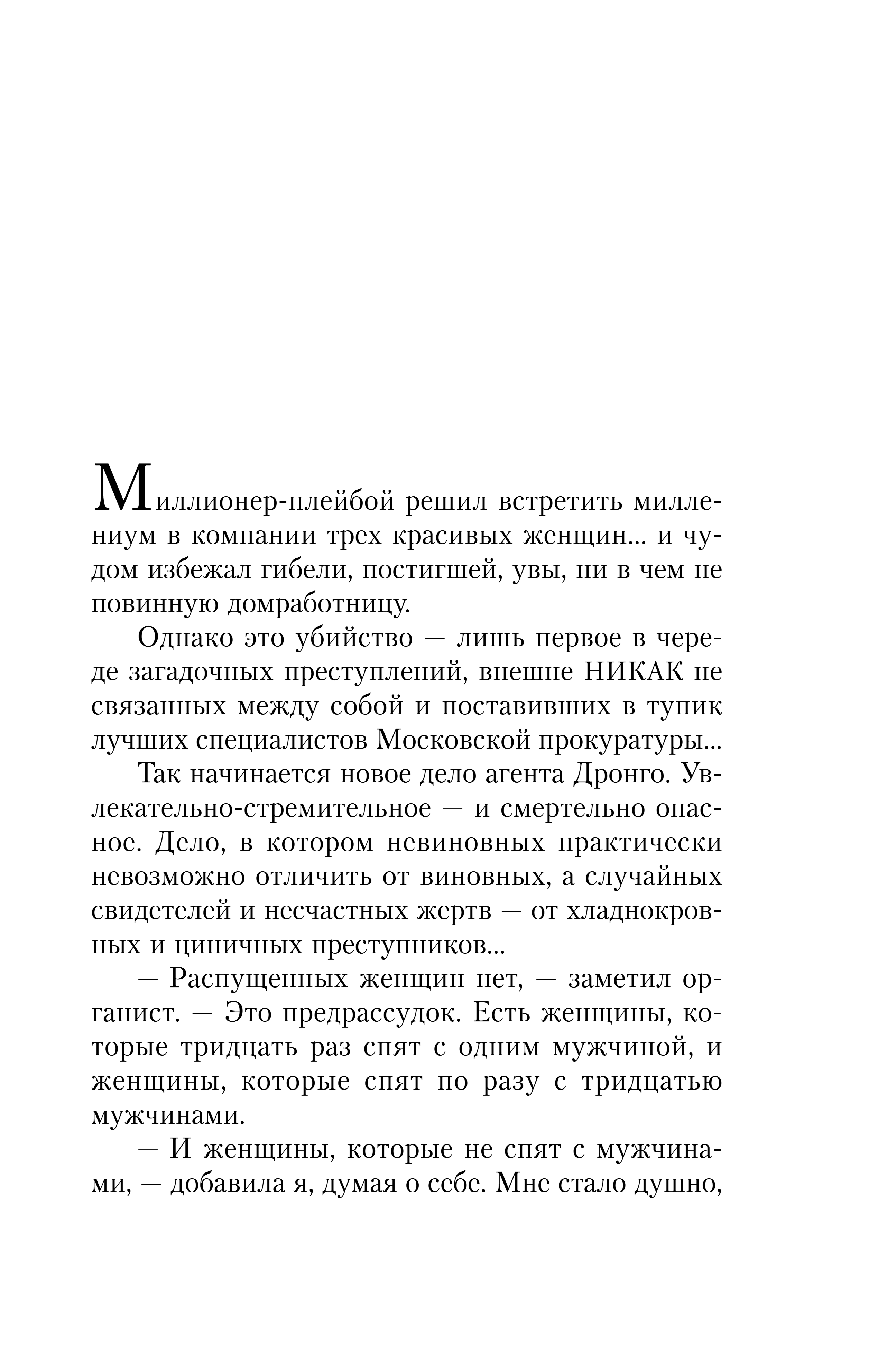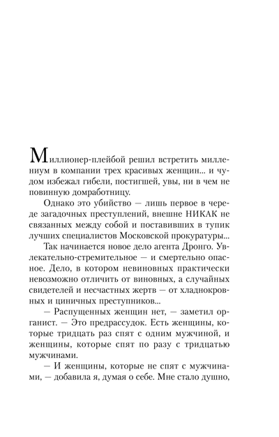 An assassination attempt has been made on the well-known Moscow oligarch Eduard Khalupovich. He was poisoned with a potent toxin, and only by sheer luck did he survive. Eduard turns to the renowned detective Drongo for help, asking him to quickly find the person who tried to take his life. Drongo begins his investigation and soon concludes that the assassination attempt was not carried out by competitors or deceived business partners. Rather, it was one of his many mistresses who tried to kill the oligarch.