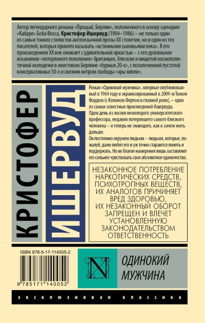 The novel "A Single Man," first published in 1964 and adapted for the screen in 2009 by Tom Ford (starring Colin Firth), is one of Isherwood's most famous works. It follows a day in the life of an elderly university professor who has recently lost the person closest to him—and now doesn't know how or why to live. He is constantly surrounded by people—people who perhaps even love him and certainly try to understand and support him. But their good intentions only make him feel even more utterly alone.