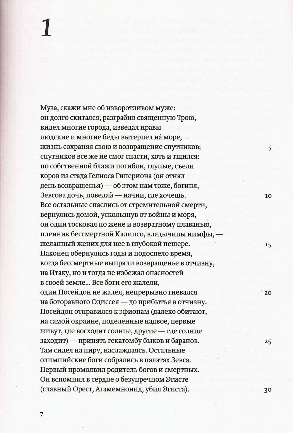 The translation is written in a taktov style, a verse meter that allows for the detailed recreation of Homer's relatively free rhythm without deviating from the stylistic principles of epic storytelling. The consistent rejection of archaisms and the desire to clearly convey Homeric imagery make the text natural to the eye.