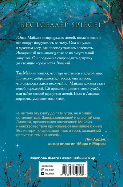 Young Maylin was returning home when suddenly everything around her was plunged into darkness. She woke up in a gloomy forest where danger lurked everywhere. A mysterious stranger saved her from a deadly trap. He offered to accompany the girl to the capital of the kingdom of Liaskai. That's how Maylin learned that she had moved to another world. But only when she reached the city, she realized that she had ended up there for a reason. Maylin must become the new queen. She will have to accept her fate or find a way to return home. After all, in Liaskai, queens die young.