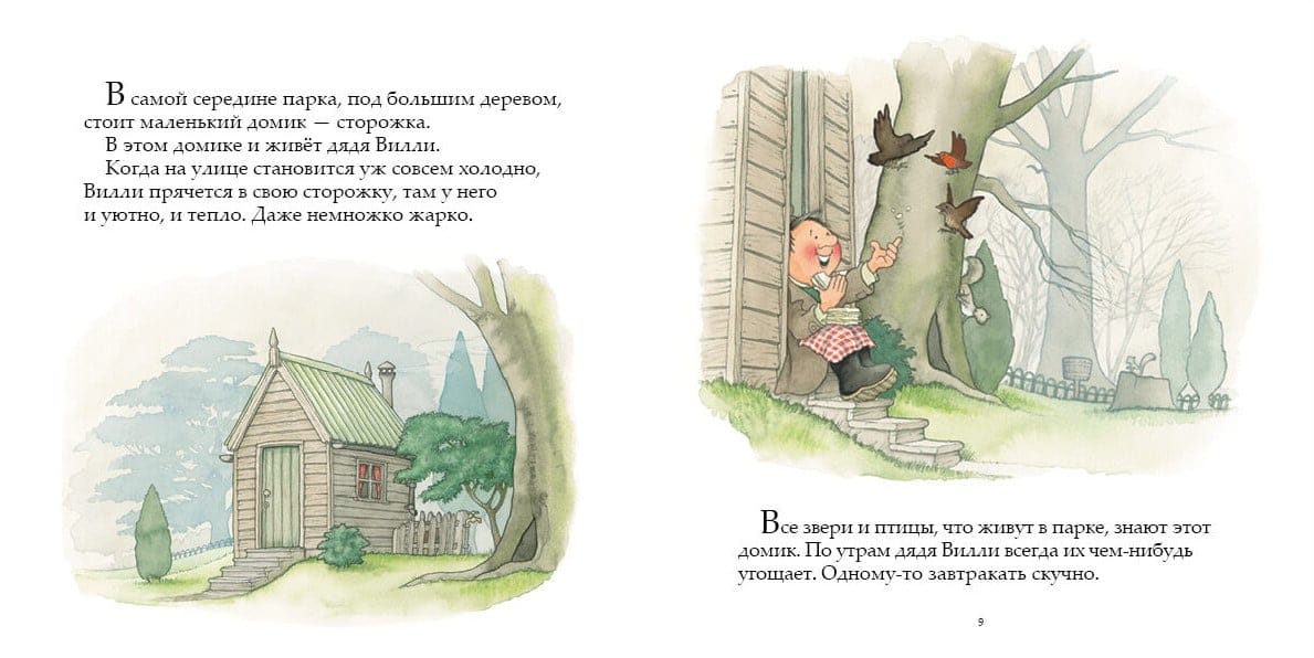 Uncle Willie works as a watchman in an old park and is friends with all its four-legged and feathered inhabitants - squirrels, hares, hedgehogs, foxes, badgers and ducks. In winter, he feeds them and lets them warm up in his hut, and in summer he saves them from floods. And the animals do not remain in debt - if needed, they are ready to come to Uncle Willie's aid at any moment. Funny, kind, "purely English" fairy tales translated by Alexander Yarin. The collection includes three stories, which were previously published as separate books in paperback ("One Winter's Night", "After the Storm", "Tumbling Flight"). Nick Butterworth is a famous English author and illustrator of children's books. His stories about Watchman Willie have been translated into many languages and have sold a total of over 9 million copies worldwide! In addition to fun stories that will make you want to reread them again and again, the book offers young readers educational tasks to find animals and various small details in the pictures.