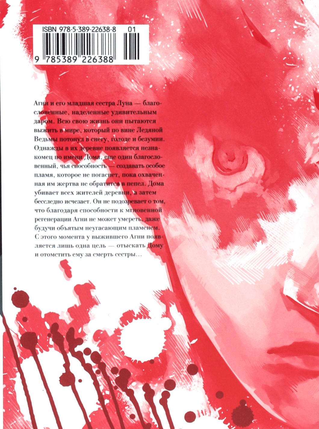 Agni and his younger sister, Luna, are blessed, endowed with a remarkable gift. They spend their entire lives trying to survive in a world consumed by snow, hunger, and madness, thanks to the Ice Witch. One day, a stranger named Doma appears in their village. He is another blessed, possessing the ability to create a special flame that will not die until its victim is reduced to ashes. Doma kills all the villagers and then disappears without a trace. Unbeknownst to him, Agni's ability to instantly regenerate allows him to remain alive, even while engulfed in the unquenchable flame. From that moment on, the surviving Agni has only one goal: to find Doma and avenge his sister's death. This book includes chapters 1–18.