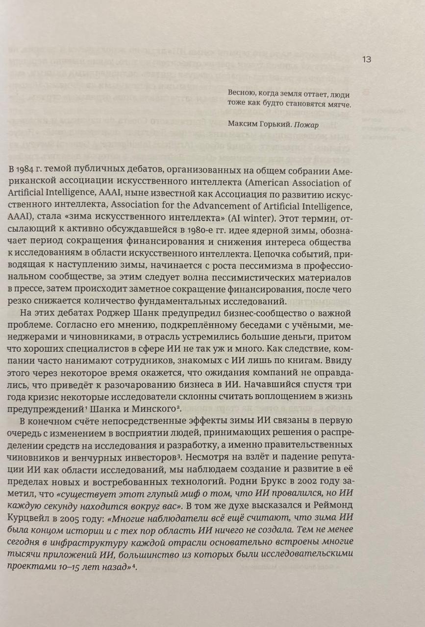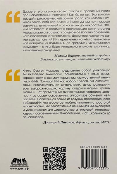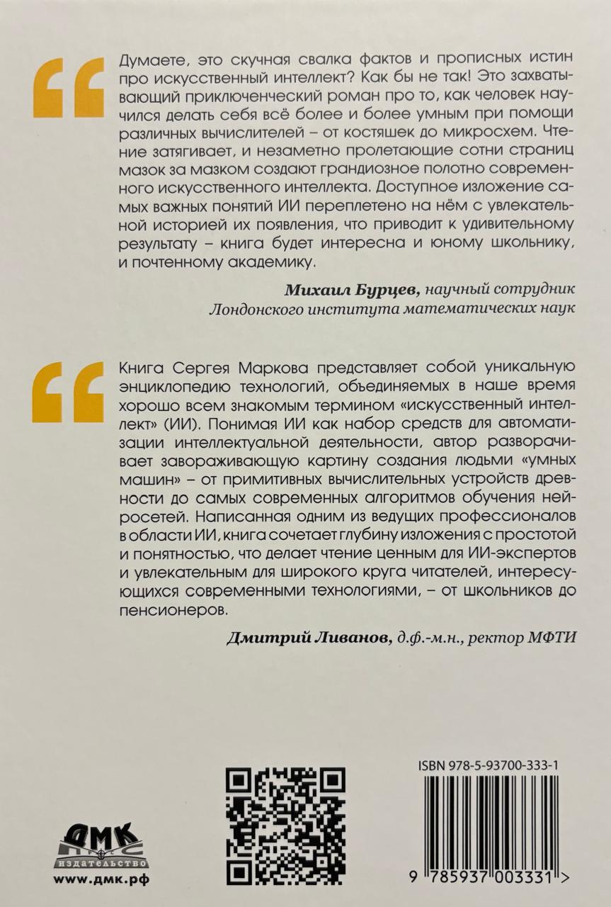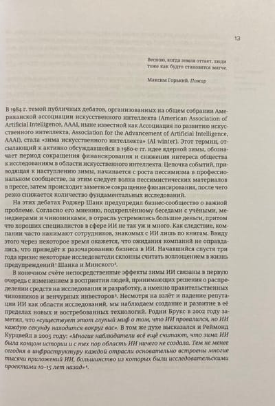 This new era in computer technology is often called the next "AI spring." Its beginning is usually dated to the advent of the neural network now known as AlexNet, whose success in visual recognition heralded the "deep learning revolution." As a result of this revolution, machines have surpassed human performance in a wide range of tasks. Today, few are surprised by machines defeating the world's most skilled Go players, creating music and paintings, using neural networks to predict the spatial structure of proteins, and other things that would have been considered miracles ten years ago. Artificial intelligence (AI) algorithms have quickly entered our lives and become an integral part of them. For example, every time you take a photo with your smartphone, a neural network processes it. The AI spring is giving way to summer. This book explores the events in the history of science that led to the beginning of this summer, modern AI technologies and their capabilities, and attempts to lift the curtain on the world of the near future.