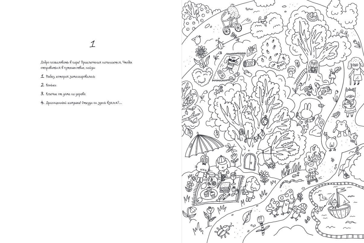 This coloring book with activities offers 30 pages of an exciting journey to a fairytale park, where everyday objects have become gigantic, and charming inhabitants are ready to play in the most unexpected places. Each page challenges your attention span and imagination.