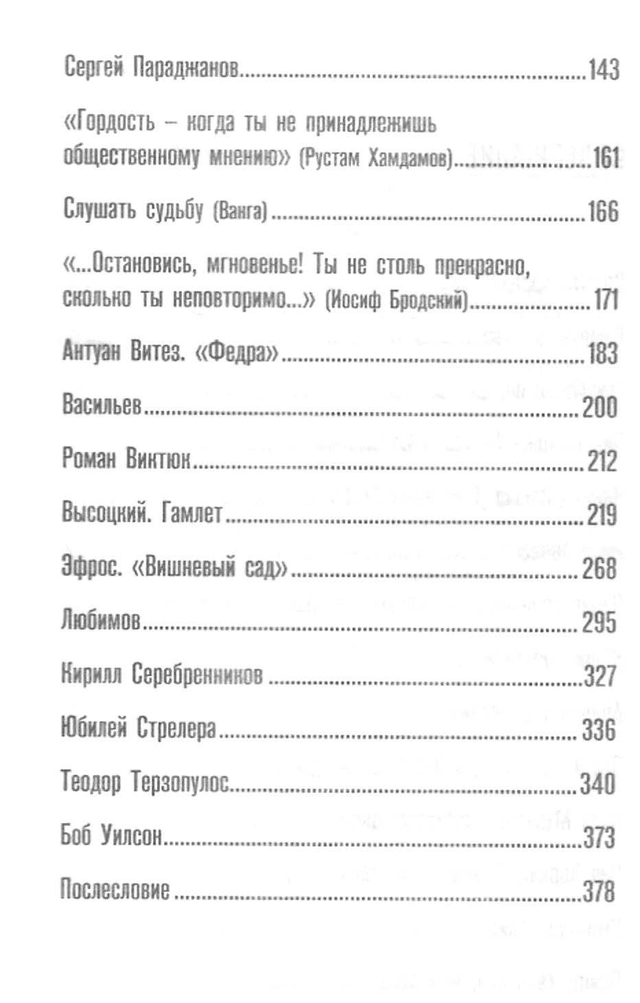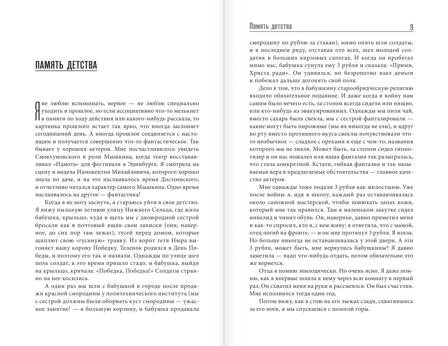 Wandering through the labyrinths of memory, the famous actress, a unique woman Alla Demidova recalls the bright pages of her creative biography and generously shares them with the reader. Together with the author, we are transported to the Taganka Theater and get to rehearsals and performances of Yuri Lyubimov and Anatoly Efros, we see Vladimir Vysotsky as if he were alive, then we plunge into the atmosphere of the seething activity of such directors as Roman Viktyuk, Larisa Shepitko, Kira Muratova, Andrei Tarkovsky, Sergei Parajanov, and nearby we observe wonderful actors - Innokenty Smoktunovsky, Georgy Zhzhenov, Dmitry Pevtsov ... And now we find ourselves in the apartment of Lilya Brik, shrouded in mystery and enigma. Or we follow the actress on her trips abroad and get to know figures of Western art - Antoine Vitez, Theodore Terzopoulos, Bob Wilson, Georges Simenon... And of course, we see Alla Demidova everywhere, in a variety of theater and film roles.