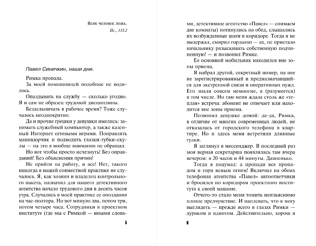 One day, my faithful assistant Rimma didn't show up for work without warning. Her phones weren't answering. Her apartment was empty. And the crime news reported a suspicious shootout involving a girl... I, private detective Pasha Sinichkin, rushed to search and found out that there were amazing and terrible secrets in my friend's life, including a double murder on a yacht in the middle of the Gulf of Finland. Now Rimma is running away to avoid becoming a victim of a treacherous and powerful enemy. I decided to help her, and then we both became targets...