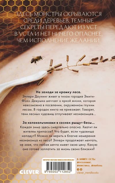 Ellery Downing lives in a small town on the edge of the forest. Leaving the city is dangerous, because in the forest can meet monsters. But Ellery so wants to live freely - to get out of a seemingly safe, but so boring world, to fall in love, to create a family. She does not have time to leave her home, as in the city comes trouble. Terrible events begin to happen, people change before her eyes. How to avoid meeting a monster? Or monsters have long been among the inhabitants of the town and it is impossible to distinguish them from ordinary people?