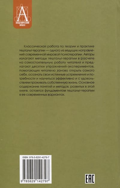 A classic work on the theory and practice of Gestalt therapy, one of the leading approaches in contemporary global psychotherapy. The authors present Gestalt therapy methods for independent study and offer dozens of experimental exercises that help readers rediscover themselves, recognize their true aspirations and needs, and learn to live their lives effectively and with pleasure. The core concepts and methods developed in this book remain the foundation of Gestalt therapy in its modern forms.