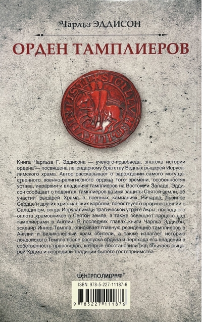 This book by Charles H. Addison, a legal scholar and expert on the history of the order, is dedicated to the legendary fraternity of the Poor Knights of the Temple of Jerusalem. The author recounts the origins of the most powerful military-religious order of the time, the specifics of the rite, hierarchy, and possessions of the Templars in the East and West. Addison recounts the Templars' exploits in defense of the Holy Land, the participation of the Knights Templar in the military campaigns of Richard the Lionheart and other Christian kings, the confrontation with Saladin, the siege of Jerusalem, and the tragic loss of Acre, the Templars' last stronghold in the Holy Land, and also covers the Templar trials in England. In the last chapters of his book, Charles Addison, Esquire of the Inner Temple, describes the principal residence of the Templars in England and the magnificent church of the monastery, and also recounts the history of the London Temple after the dissolution of the order and the transfer of its possessions to the ownership of lawyers, who restored a number of the customs of the Knights Templar and revived the traditions of former hospitality.