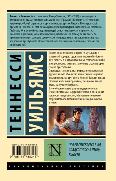 This collection includes two legendary plays by Tennessee Williams: "Orpheus Descending" and "Sweet Bird of Youth," united by the themes of destructive love and the terrifying loneliness of a crowd.