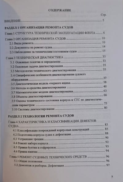 The article examines the fundamentals of organization, technology of ship repair using technical diagnostics, its structure and place in the technical operation of ship technical equipment (STS). The fundamentals of modern organization of ship repair, preparation of the main documents are described and their samples are given.