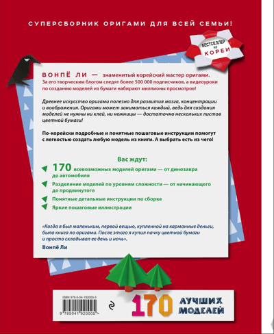 Thanks to this book by the famous Korean origami master Wonpyo Lee, folding paper figures will play with new colors and give a lot of positive emotions not only to kids, but also to their parents.