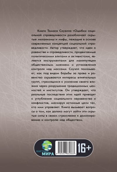 Thomas Sowell's book, The Social Justice Failure, exposes the hidden mechanisms and myths that underlie contemporary concepts of social justice. The author argues that ideas about equality and fairness promoted by political elites and activists are tools for manipulating public opinion and establishing control over the masses. Sowell shows how the guise of the fight for rights and equality conceals the interests of influential groups seeking to strengthen their influence through the destruction of traditional values and institutions. He argues that the real consequences of these ideas lead to deepening social inequality and conflict, masking the true goals of those who govern them. The book raises questions about how far these hidden forces can go in their quest for dominance and control over society.