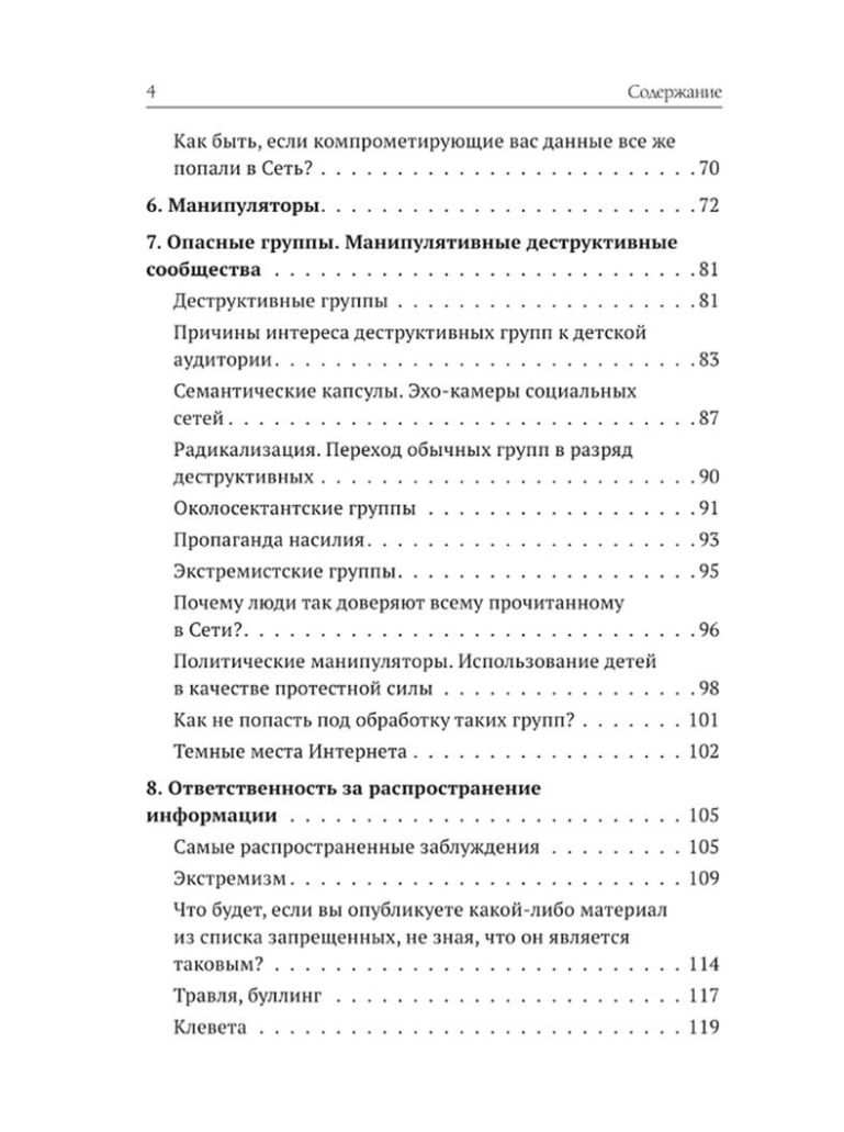 This manual is addressed to children and their parents and is a short course in survival on the Internet. Today, the Internet is one of the most accessible ways to explore the world around you. But it conceals not only great opportunities, but also significant risks, sometimes hidden from the novice user. The manual is the result of many years of work by the author on studying the influence of destructive content on children. The reader will find answers to many questions about Internet manipulation, search engines, Wikipedia, blackmail and extortion, Internet fraud and fake online stores. How do ordinary groups become destructive? How to protect children from bullying? Why can't you completely trust information from the Internet? Who and why spreads fakes? And finally, what is the responsibility for spreading false information?