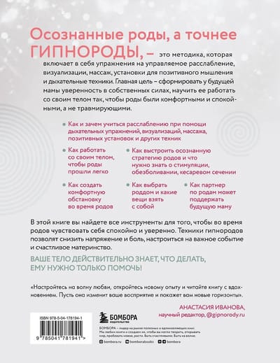 The book includes practical exercises, guided relaxation techniques, lists of things you might need on the day of birth, and much more.