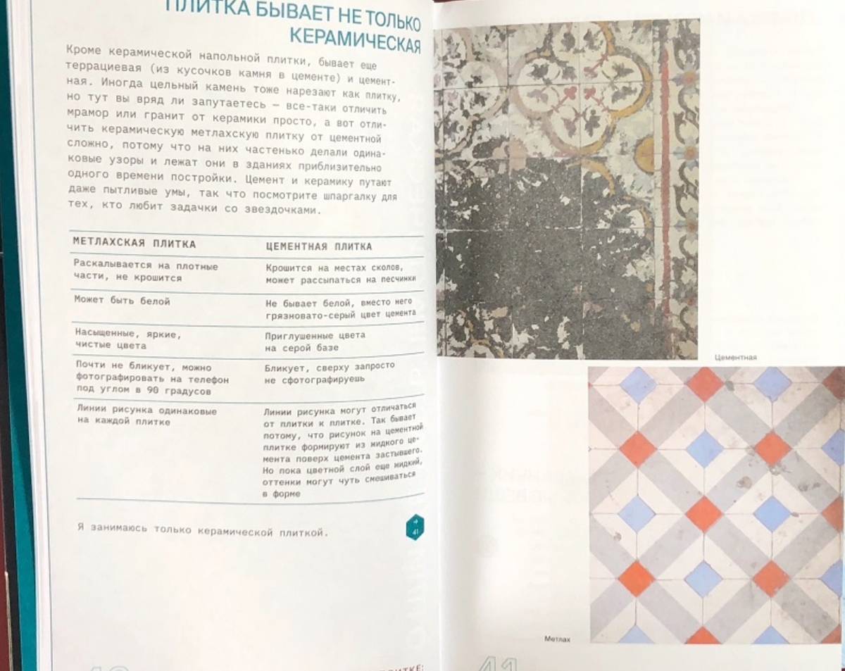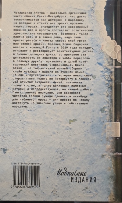 Metlakh tiles are such an integral part of St. Petersburg's appearance that they've long been taken for granted: in entryways, on facades, and on walls, they preserve our city's past, define its modern appearance, and simply provide aesthetic pleasure to the beholder. Perhaps you have such tiles in your home too; you just have to look closely—sometimes through layers of dirt or fresh paint. Local historian Ksyusha Sidorina, together with the Gang team, has been finding, cleaning, and restoring architectural details in former apartment buildings since 2019. Over time, this activity, which began as an adventure and hobby, has grown into a great friendship, a calling, and an entire local history festival (Kraikon). Ksyusha's book is not only the most comprehensive collection of metlakh and tile stamps in Russian, but also a guidebook that can be used to confidently explore St. Petersburg in search of already-cleaned stained-glass windows, stoves, tiled floors and walls. It also contains a collection of memorable stories about Gang's unpredictable but important work: they might even inspire the reader to create something for their beloved city with their own hands—or simply to take a fresh look at familiar streets and their own front door.