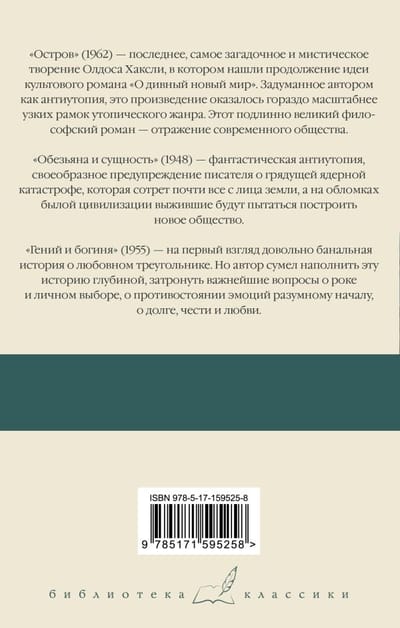 "Monkey and Essence" (1948) - a fantastic dystopia, a kind of warning of the writer about the coming nuclear catastrophe, which will wipe almost everything off the face of the earth, and on the wreckage of the former civilization survivors will try to build a new society. "The Genius and the Goddess" (1955) - at first glance a rather banal story about a love triangle. But the author managed to fill this story with depth, to touch upon the most important questions about fate and personal choice, about the opposition of emotions to reason, about duty, honor and love.