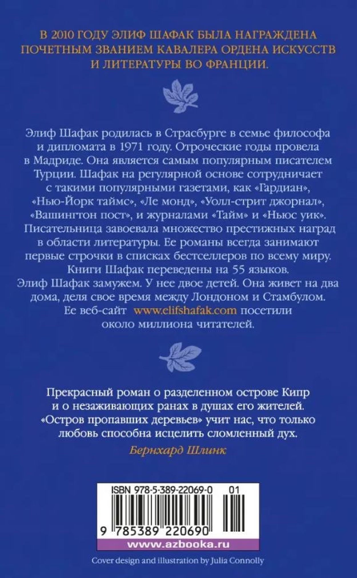 Cyprus. 1974. A pair of young lovers, Greek Kostas and Turkish Defne, meet secretly in a romantic tavern under the shade of an old fig tree growing right in the hall. The tree witnesses the tragic events that split the once peaceful and beautiful island in two, twisted the fates of its inhabitants and seemed to separate Kostas and Defne forever... London. The end of the 2010s. In the garden of the house where his sixteen-year-old daughter Ada lives with Kostas, a young fig tree grows. For Ada this is the only link to the island, where she has never been, and with the dramatic history of her family, which, like the tree, is rooted in the distant past ... "Island of Missing Trees" - a touching, romantic love story against the backdrop of internecine strife and the horrors of civil war. For the first time in Russian!