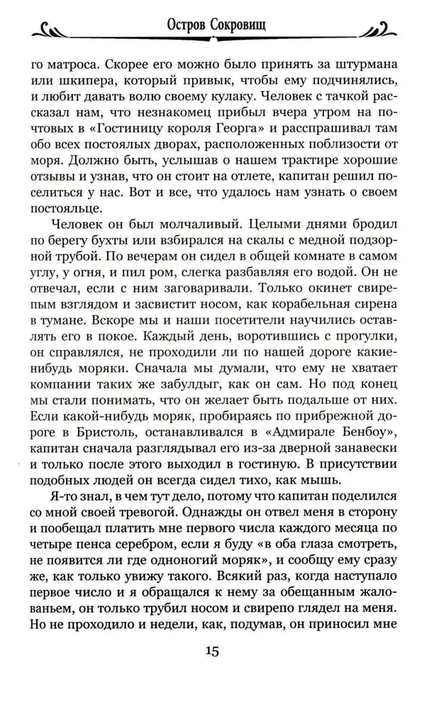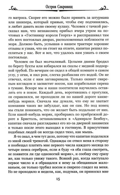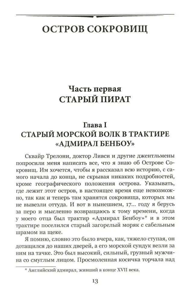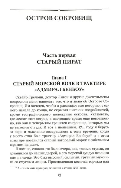 "Treasure Island" Robert Louis Stevenson (1850-1894) can rightly be called the world's most famous pirate novel. Treasure on an island lost in the ocean, unforgettable images of one-legged John Silver, sinister Blind Pugh and brave Captain Smollett will not leave indifferent neither a child nor a connoisseur of history.