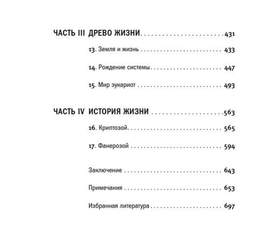 "Focus" of the story is the evolution of life on Earth: the author believes that only from this angle of view, the most different biological problems acquire a single meaning. The book consists of four parts, the themes of which are successively expanded: "The Chemistry of Life", "The Mechanism of Life", "The Tree of Life" and "The Story of Life".
