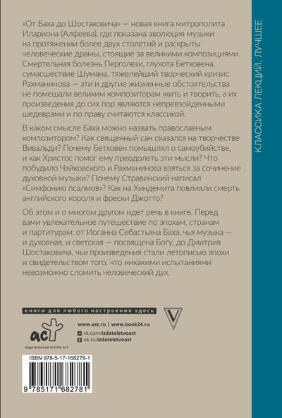 "From Bach to Shostakovich" is a new book by Metropolitan Hilarion (Alfeyev), which shows the evolution of music over more than two centuries and reveals the human dramas behind great compositions. Pergolesi's fatal illness, Beethoven's deafness, Schumann's madness, Rachmaninoff's severe creative crisis - these and other life circumstances did not prevent the great composers from living and creating, and their works are still unsurpassed masterpieces and are rightfully considered classics. In what sense can Bach be called an Orthodox composer? How did the priesthood affect Vivaldi's work? Why did Beethoven think about suicide, and how did Christ help him overcome these thoughts? What prompted Tchaikovsky and Rachmaninoff to take up composing sacred music? Why did Stravinsky write the "Symphony of Psalms"? How did the death of the English king and Giotto's frescoes influence Hindemith? This and much more is discussed in the book.