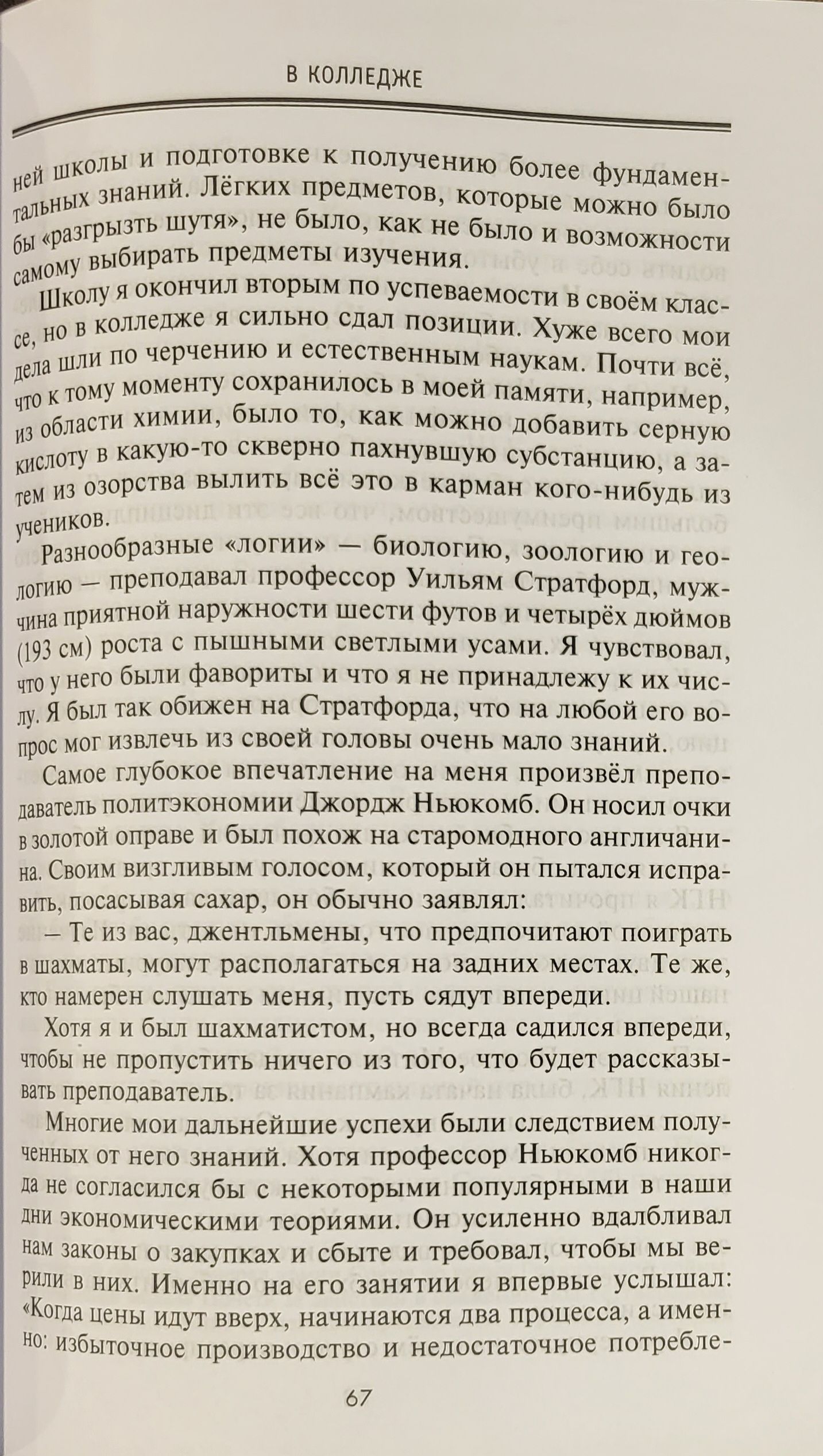 The "lone wolf of Wall Street", "economic dictator", "gray cardinal of the White House" - that's what Bernard Baruch was called. Having accumulated capital on the stock exchange, Baruch went into politics, becoming an economic advisor to five consecutive American presidents. In World War I, he headed the U.S. Military-Industrial Committee, transferring American industry on military rails and on this well earned, then, as a member of the Supreme Economic Council of the Versailles Conference, has a hand in reshaping the political map of the world, further pulls off a big score in the Great Depression. It was he who introduced the term "Cold War"... In his autobiographical book Baruch tells about his family, financial adventures, meetings and work with statesmen, reflects on the politics and economy of his country.