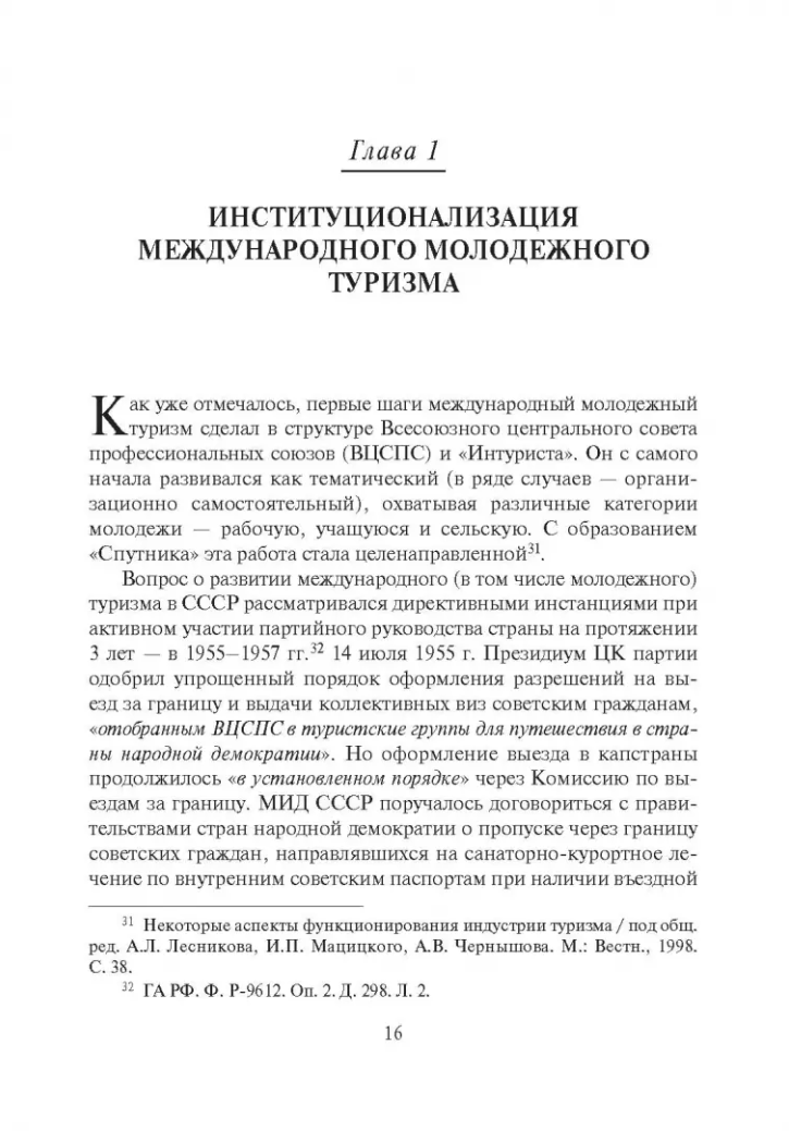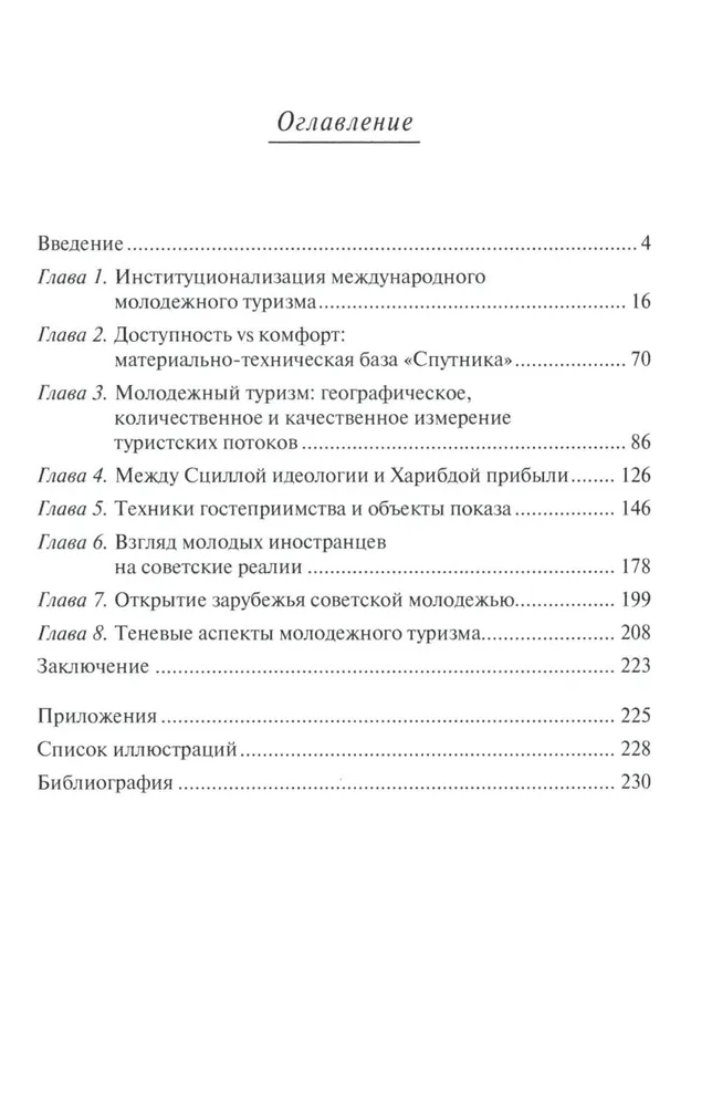 The monograph on the basis of documents of the central and regional archives, materials of the periodicals and a complex of scientific literature reconstructs the history of the Bureau of International Youth Tourism "Sputnik" 1957-1991. In the pages of the book come to life people rebuilding the system of youth tourism in the USSR, as well as young Soviet travelers discovering the world around them, and above all outside the Soviet ecumene. The publication covers a number of issues: the problems of institutionalization, the creation of the material, technical and financial base of international youth tourism; geography and volumes of inbound and outbound tourism; hospitality techniques and display facilities; the opening of Soviet youth abroad and the view of young foreigners on Soviet reality; shadow aspects of youth tourism.