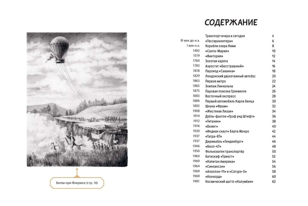 All great journeys, all inventions and discoveries begin with someone's dream. Long before the first manned spaceship Vostok-1 with Yuri Gagarin on board went into space, some unknown weirdo and wise man invented the wheel. We do not know when it happened. However, from that very minute the history of world transportation began. Its pages can tell us a lot about our civilization. Carriages and trains, ships and submarines, bathyscaphes and balloons, airships and helicopters - behind all these are human destinies, mistakes and triumphs. This book with magnificent illustrations by Martin Sodomka opens the door for readers to the amazing world of technology created by human genius. For primary and secondary school age.