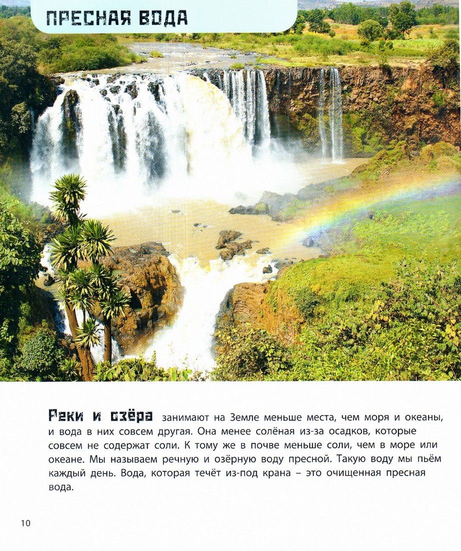 This informative book with gorgeous photographs contains fascinating information about the water world of our planet. What is the water cycle in nature? What is the difference between water in rivers and in the oceans? Here you will find stories about the most unusual and picturesque rivers and lakes, about seas and oceans, about artificial reservoirs, dams and hydroelectric power plants. And the book is also full of entertaining tasks and fun author's drawings, thanks to which new knowledge is easier to digest.