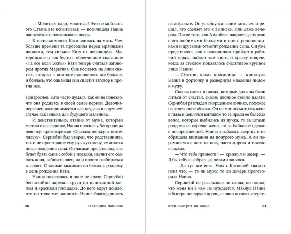 Ekaterina Manoilo's debut novel, which long before the book's release attracted the close attention of literary observers and critics, and won the Alexander Pushkin Lyceum Prize. The heroine of the novel, Katya, the daughter of a Russian and a Kazakh, lives in a small border town, and the two cultures have had an equal influence on the formation of her personality: contradictory, complex, and bright. She leaves for Moscow from a deep personal tragedy, but it is impossible to escape from her native places forever: they attract her, force her to return at least for a while, and try to break her.