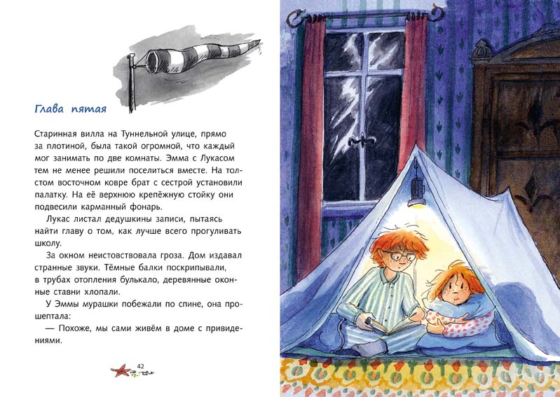 In the second book in the series, the wonderful red-haired family - Daddy Mick and his children Emma and Lucas - take on a new detective investigation. The Crab's Hotel on the Isle of Northerney is apparently haunted, which is why no one stays there. While Mick's dad checks into the hotel, Emma and Lucas ambush him outside. It's a good thing that Janssen's great-uncle Janssen has perfectly equipped a detective van especially for such cases. There is literally everything in it, from all sorts of technical innovations that allow you to see and hear literally through the walls, and ending with an impressive supply of food, which may come in handy during the multi-day tracking of the criminal. And the ghosts don't keep you waiting. Their howls and rumbles make the walls shake and move. And they scare Mick's dad so much that he leaves the hotel in a terrible panic. But scaring Emma and Lucas isn't so easy. Besides, they guess that under the guise of ghosts are probably disreputable and deceitful people. They return to the hotel and, risking their lives, not only expose the criminals, but also save the life of a noble old lady. The key to success in the investigation is simple: Emma and Lucas are observant, smart and fearless. And they complement each other perfectly. And the fact that they are still children only helps them to penetrate where not every adult would go. An engaging plot, likable characters and excellent translation by Pavel Frenkel guarantee a one-sitting read from the first to the last page. Recommended for children of primary school age.