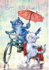 This beautiful and funny postcard featuring blue cats is sure to please the recipient, as Irina Zenyuk's illustrations are so sweet and meticulously crafted.