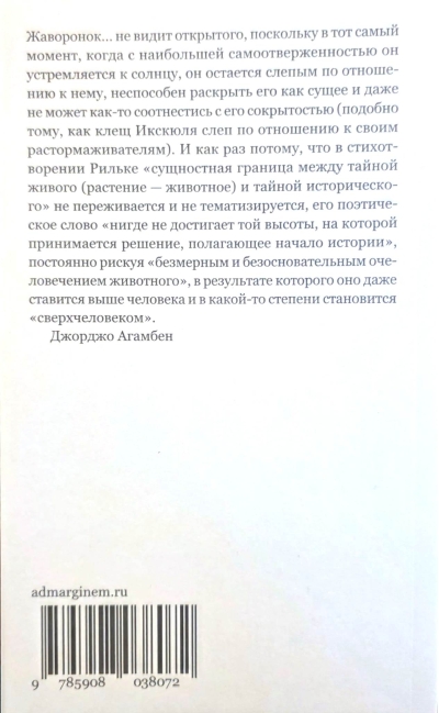 What is human, and where is the line crossed by which an animal becomes human? In his essay "The Open" (2002), the Italian philosopher Giorgio Agamben (b. 1942) continues his reflections on bare life, begun in his book series "Homo sacer," and explores the problematic "and" that connects and separates animals and humans. In the context of the Hegelian-Kozhevian end of history, when biological life becomes the state's primary concern—people are animalized and creatures anthropomorphized—humans remain those to whom, unlike animals, existence can be revealed as "open," or, in ancient Greek, "unhidden" (truth). Drawing on the works of Heidegger, Uexküll, and Benjamin, Agamben suggests paying attention to this elusive caesura between man and animal, revealed in Benjamin’s “saved night,” which penetrates the inner part of man himself and becomes the key to understanding humanism after all the upheavals of the 20th and 21st centuries.