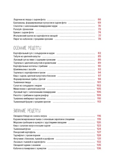 This book is a unique collection of recipes for those who value healthy eating and a variety of tastes. The pages feature more than 60 seasonal dishes with various combinations of vegetables that can be served as an appetizer, side dish or even dessert. Set an unforgettable table and delight your guests and loved ones with a variety of delicious vegetable dishes!