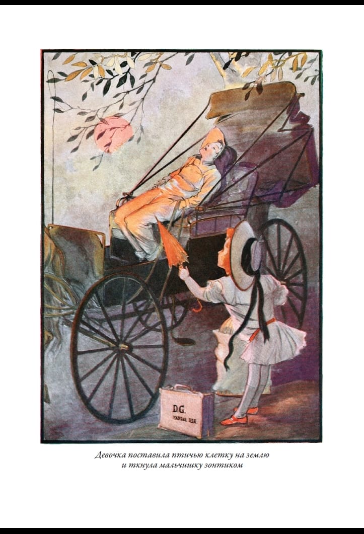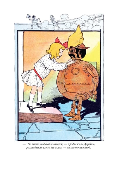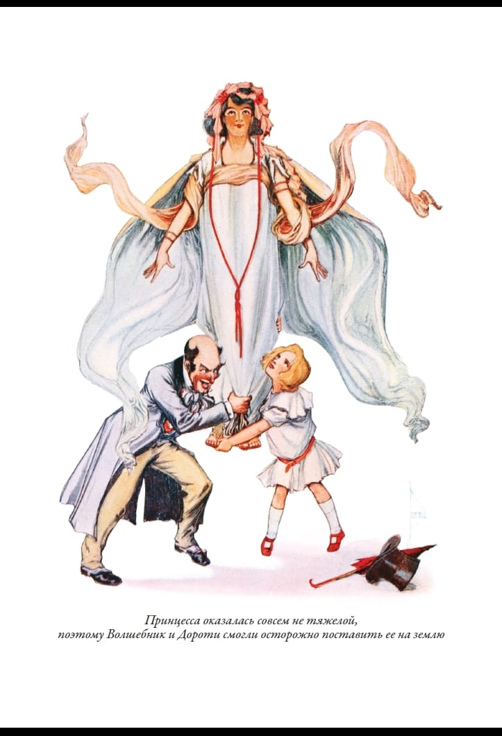 American writer Frank Baum's story of Dorothy. Scarecrow, the Tin Woodsman, the Cowardly Lion, and the Land of Oz, became a bestseller in the late 19th century. Baum did everything possible to make his characters met with as many young readers as possible - he worked on theatrical productions of his story, drew comic strips for newspapers and magazines, which described the new adventures of his characters. Before beginning his literary career, Frank earned a living selling all sorts of things in a modest store, which he opened in one of the towns of Dakota. The success of the first book prompted Baum - found his gold mine should be developed further. After the first story about the land of Oz followed the second. In it there were new characters - Pumpkinhead Jack, Beetle Kuvyrkun, revived Goats and other characters. The second book was followed by the third. On its pages Dorothy again fell into a magical country inhabited by amazing creatures, and met her old friends - Scarecrow, Tin Man, the Wizard of Oz and many others. In the fourth book, Baum sent his protagonist into the underworld, where Dorothy entered the Glass City and met Mangabeans, invisible bears, and flying gargoyles. Baum diversifies his narrative by reintroducing new characters - Jim the horse, his coachman, the boy Zeb, and the kitty Eureka. You are holding in your hands a translation of Baum's third and fourth books. And this is only part of a long series of stories about the adventures of Dorothy. The first edition of Baum's tale of Oz was published in the United States with illustrations by William Denslow; Baum met him in 1893. He liked the drawings of this artist, who specialized in making posters and posters. In Baum's opinion, such a manner with clear contour lines and large spots of color and needed for a children's book. For Denslow, working with Baum was the pinnacle of his career. All of Baum's subsequent books about Dorothy's adventures were illustrated by another artist, John Rea Neill. It is they who accompany this book as well. Neill began his career as an illustrator drawing comic strips for a Philadelphia newspaper. As with Denslow, Neill's drawings for Frank Baum's stories about the magical land of Oz made this artist famous in the United States. Neill continued to illustrate books about the adventures of Dorothy even after the death of Baum himself, when new stories about the heroes of Oz wrote already Ruth Thompson. When she retired from this work, Neill himself invented several more stories about Oz and illustrated them himself.