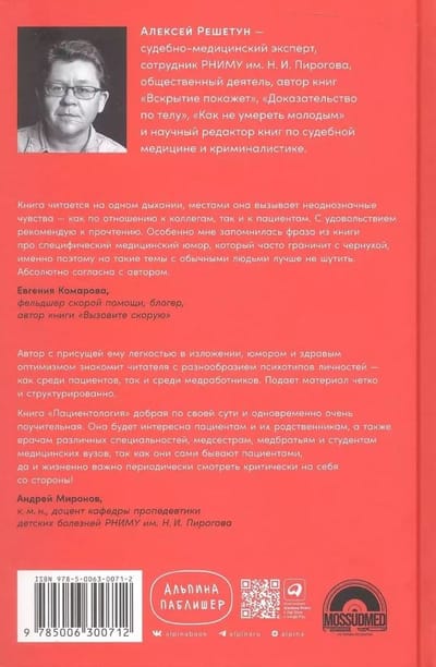 The book of forensic expert Alexei Reshetun, the author of the best-selling autopsy will show, is an ironic guide to the complex world of doctor-patient relationships. The author invites you to look at the usual situations that we face in clinics and hospitals from an unexpected side. Based on his personal experience and the real stories of his colleagues, he talks with humor and love about the main characters of the book - patients: late, alarmists, expectants and eccentrics. You’ll also learn why the internet isn’t the best treatment advisor, what the fear of dentists leads to, and what not to do in line to see a therapist. The book "Patientology" will be interesting to those who at least once in their lives went to the doctor, and those who wear white coats.